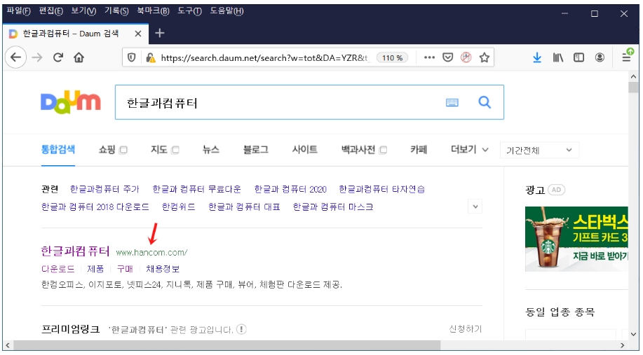 1) 검색창에 [한글과컴퓨터]를 검색하셔서 접속합니다.