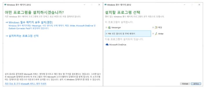 2. 프로그램 설치 시 [필수 패키지 모두 설치]가 있는데 "윈도우 무비메이커"만 설치하시려면 [설치하려는 프로그램 선택]하셔서 "사진 갤러리 및 무비 메이커" 만 체크한 뒤 설치버튼을 클릭합니다.