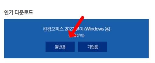 2) 홈페이지에 접속하시면 [한컴오피스 2022뷰어(Windows용)] 일반용을 클릭해서 다운로드를 합니다.