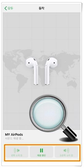 - 에어팟을 찾았으면 케이스에 넣거나 앱에서 사운드 중지 버튼을 누릅니다.