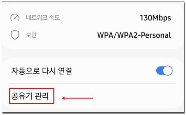 5) 아래로 내려보시면 [공유기 관리]를 선택합니다.
