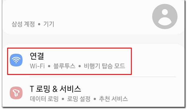 2) 설정에 들어가신 후 [연결] 메뉴에 들어갑니다.