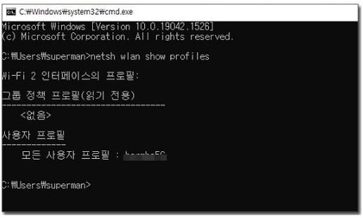 - netsh wlan show profiles 와이파이 프로필 key=clear