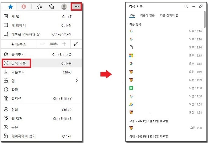 2. 엣지 브라우저 방문 기록 확인 및 삭제