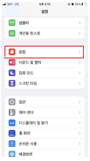- 설정 > 알림으로 이동합니다.