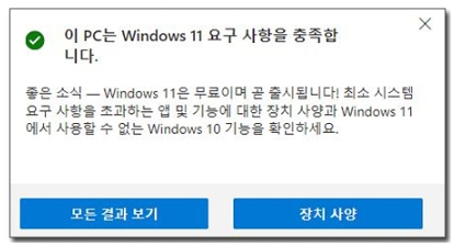 - 내 PC 윈도우11을 지원하는지 알아보는 프로그램입니다.
