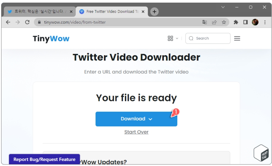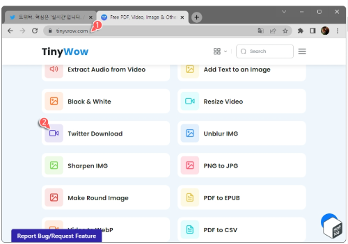 4) Tiny Wow 사이트에 접속하여 아래로 스크롤하면 [Twitter Download] 메뉴를 클릭합니다.