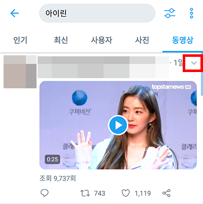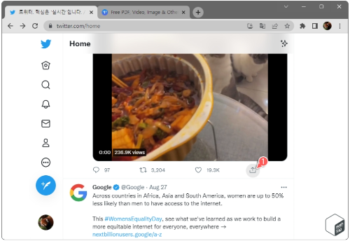 1) 트위터를 접속해서 로그인하고 다운로드하고 싶은 동영상을 검색합니다. 동영상 우측 하단을 보면 [공유]를 클릭합니다.
