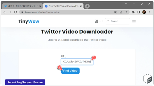 5) 다운로드 하고 싶은 트윗 주소를 URL 입력 상자에 붙여 넣고 [Find Video] 버튼을 누릅니다.