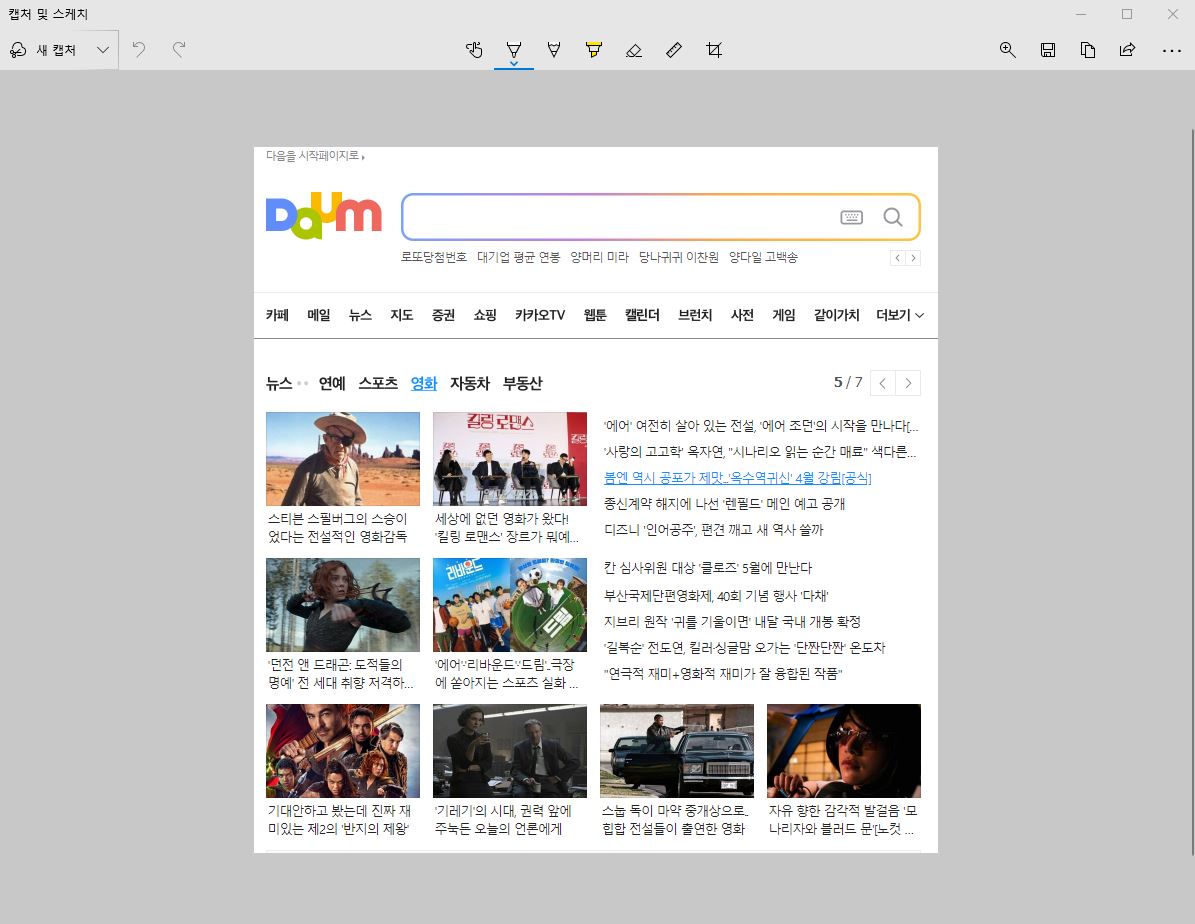 - 현재 제가 다음 창을 활성화 시킨 상태에서 Alt + Print Screen을 하고 그림판에서 Ctrl + v 했는데 이렇게 활성화 된 창만 캡처가 되었습니다.