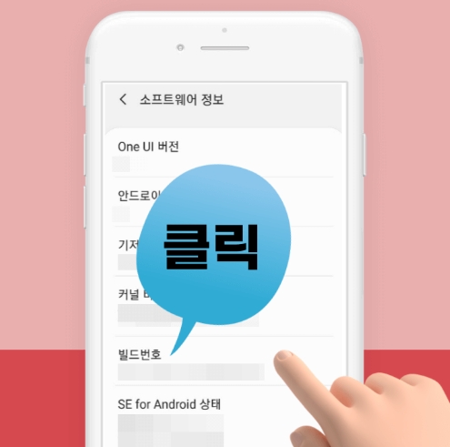 ① 개발자 옵션 활성화 : 휴대폰 설정 >> 휴대전화 정보 >> 소프트웨어 정보 >> '빌드번호' 항목 7회 클릭