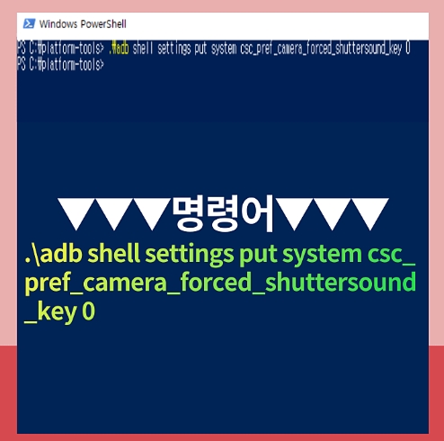 ⑧ 명령 프롬프트창에 .\adb shell settings put system csc_pref_camera_forced_shuttersound_key 0 명령어 입력