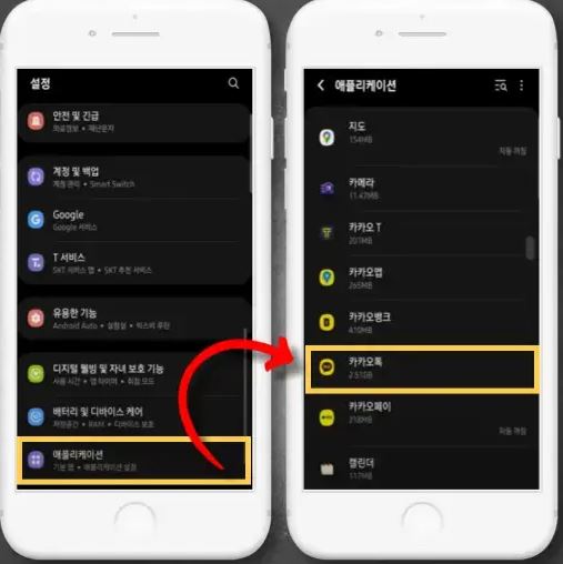 - [애플리케이션 > 카카오톡] 선택