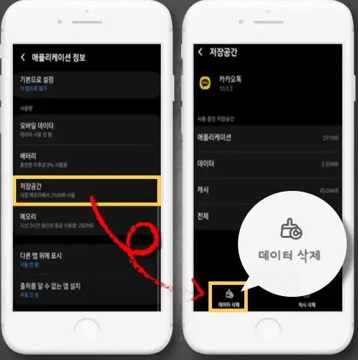 카카오톡 데이터 삭제 시 계정이 로그아웃되고, 계정 내 대화 내용 및 설정 데이터베이스 등 모든 파일이 모두 초기화·삭제됩니다.(계정 내 데이터베이스 정보가 필요한 경우 대화 백업 후 이용)