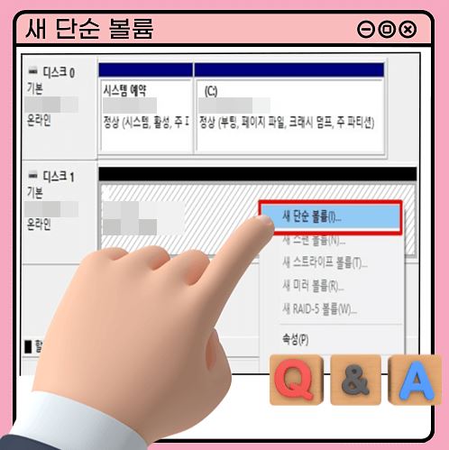 ④ D 드라이브 마우스 이동 >> '새 단순 볼륨' 항목 선택