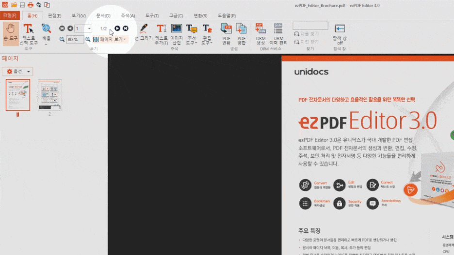 PDF 편집 프로그램이 이지 에디터만 있는건 아니지만 제가 사용해본 것중에서 제일 편하고 유용한 프로그램이라서 오늘 소개하려고 합니다. 누적 사용자 500만 다운로드를 돌파한 이지 에디터 3.0은 PDF 전자 문서의 생성부터 열람, 변환, 편집, 활용, 보관, DRM보안, 워터마크, 프레젠테이션, 전자인장 등 모든 프로세스를 간편하게 수행 할 수 있는 다양한 기능을 유료 및 무료로 제공하고 있습니다.