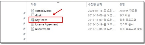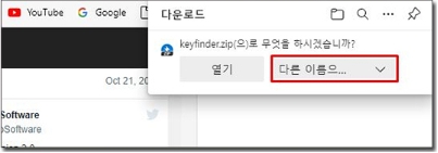 zip 파일로 되어 있기 때문에 [다른 이름으로 저장]해서 아무 폴더에 다운로드 하시고 Zip 파일을 압축 풀어준 후 KeyFinder를 실행시켜 줍니다.