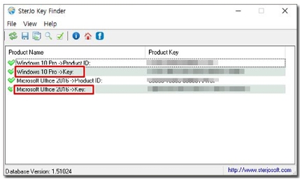KeyFinder 실행하면 윈도우10 버전과 제품키가 나옵니다. 오피스 버전과 제품키까지 나오니 참고하시면 되겠습니다.