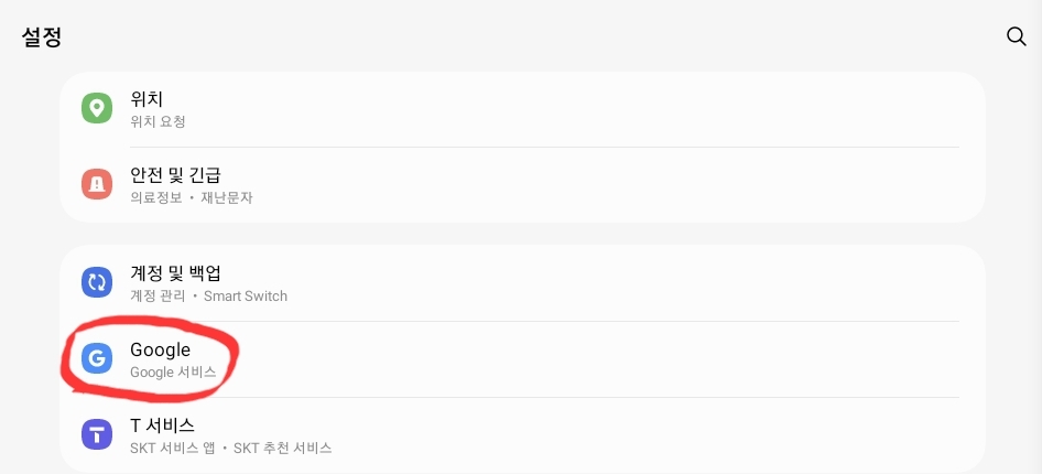 2) 설정 들어가셔서 스크롤을 아래로 내리셔서 [Google] 을 클릭합니다.
