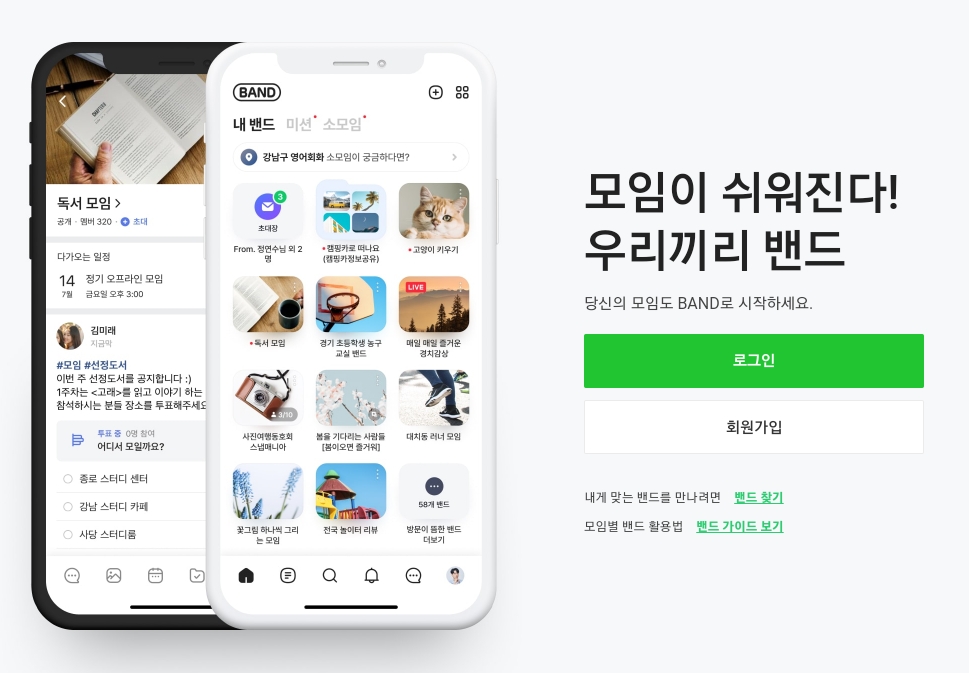 1) 네이버 밴드 홈페이지에 접속합니다.