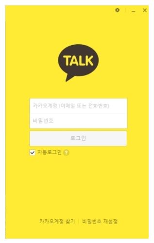 4) 설치가 완료되면 아래 화면같이 카카오톡 로그인 화면이 나옵니다.