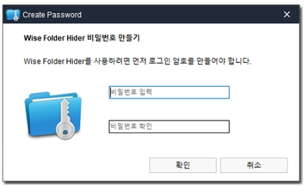 3) 설치가 완료되고 wise Floder Hider 프로그램을 실행하시면 비밀번호 만들기가 나옵니다. 이곳에 원하는 비밀번호를 넣어주세요.