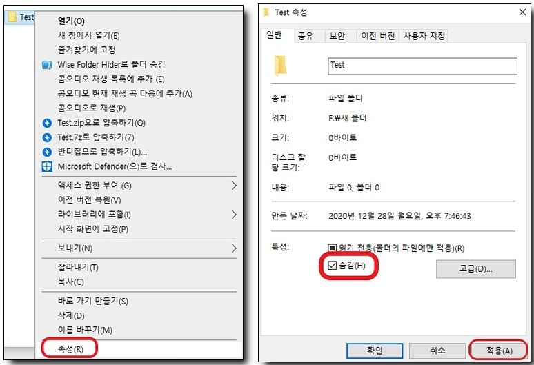 윈도우10 폴더 숨기기 2가지 방법