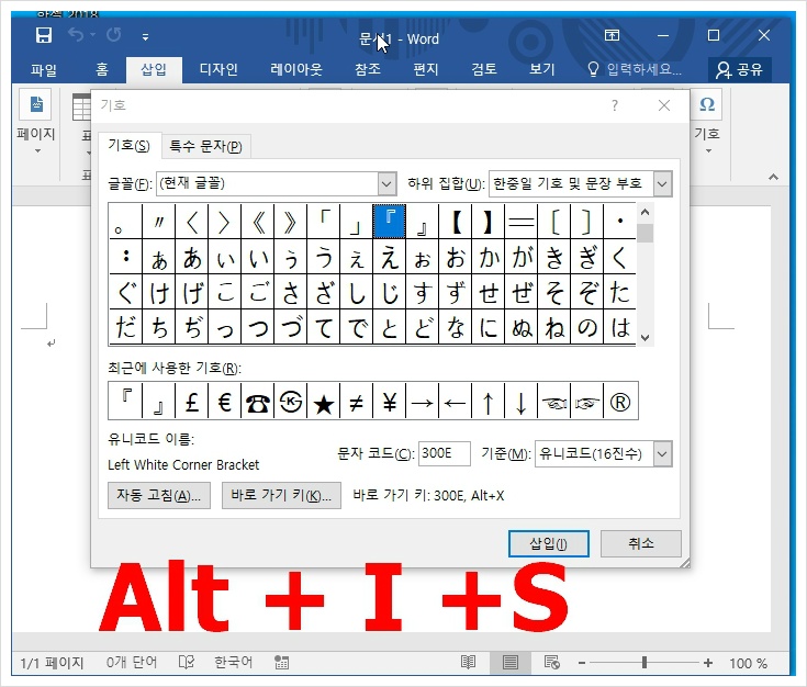 여기까지 워드 특수문자 단축키 Alt + 1로 설정하는 방법에 대해서 알아봤습니다. 감사합니다.