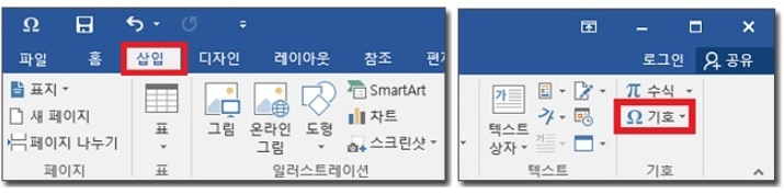 O 워드를 열고 상단바에서 [삽입]을 누른 후 우측 끝 메뉴에 [기호]를 눌러 [다른 기호]를 누르면 특수문자표가 열립니다. 하지만 이렇게 매번 특수문자를 쓰려고 누르기는 힘드실겁니다.