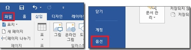 1) 워드 상단바에 [파일]을 클릭하고 [옵션]을 선택합니다.