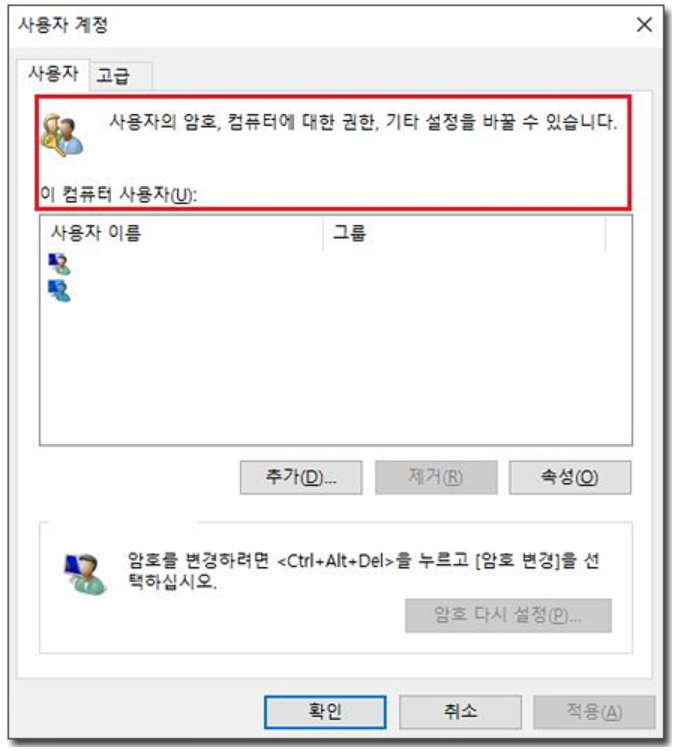 1) 두번째 [사용자 계정에서 로그인 없애기] 하실 때 [사용자 이름과 암호를 입력해야 이 컴퓨터를 사용할 수 있음]을 체크해제 해야 하는데 이 문구가 아예 안나오는 경우가 있습니다. 이럴때는 레지스트리를 수정해야 합니다.