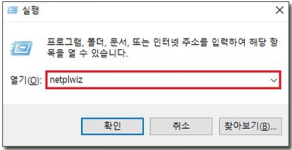 1) Windows 키 + R 키를 눌러 실행창을 열어준 후 netplwiz 를 입력합니다.