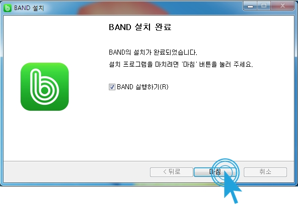 6.밴드 PC버전 설치가 모두 완료 되었습니다. "마침" 버튼을 눌러주세요.